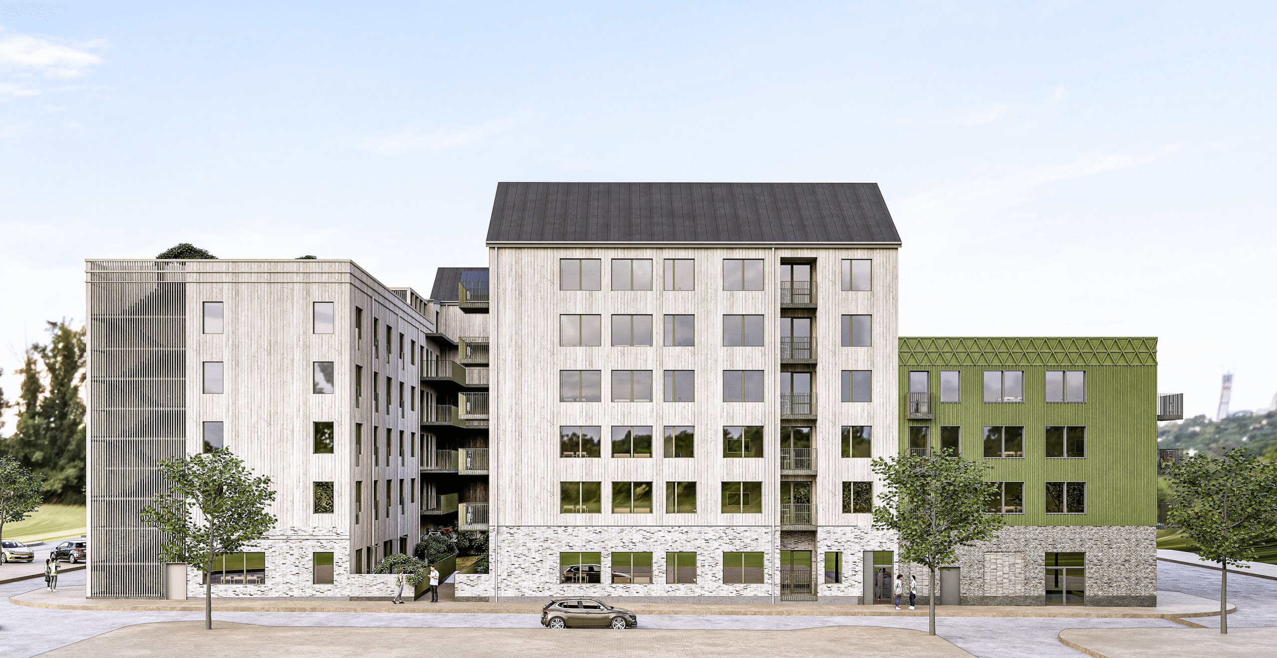 Bostadsrättslägenheterna i projektet är mellan 1 och 4 rum och kök, med planerad säljstart våren 2026. Byggnaden får en trädominerad fasad, sockel i tegel, två takterrasser för äldreboendet, solceller samt inslag av återbruk. Projektet certifieras enligt Svanen, i linje med Stena Fastigheters hållbarhetsstrategi.