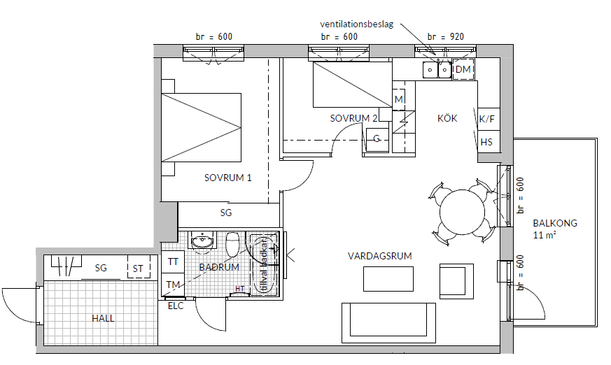 Fin trea på 75 kvm med stor öppen planlösning. Master bedroom är rejält och ligger avskilt placerat i lägenheten. Badrummet har så klart både tvättmaskin och torktumlare och här finns också möjlighet att välja badkar som tillval om man vill. Balkongen i österläge når man från vardagsrummet. Köksdelen är bra planerad med möjlighet till matplats vid fönstret intill. Det mindre sovrummet passar också bra som kontor om man hellre skulle vilja det.