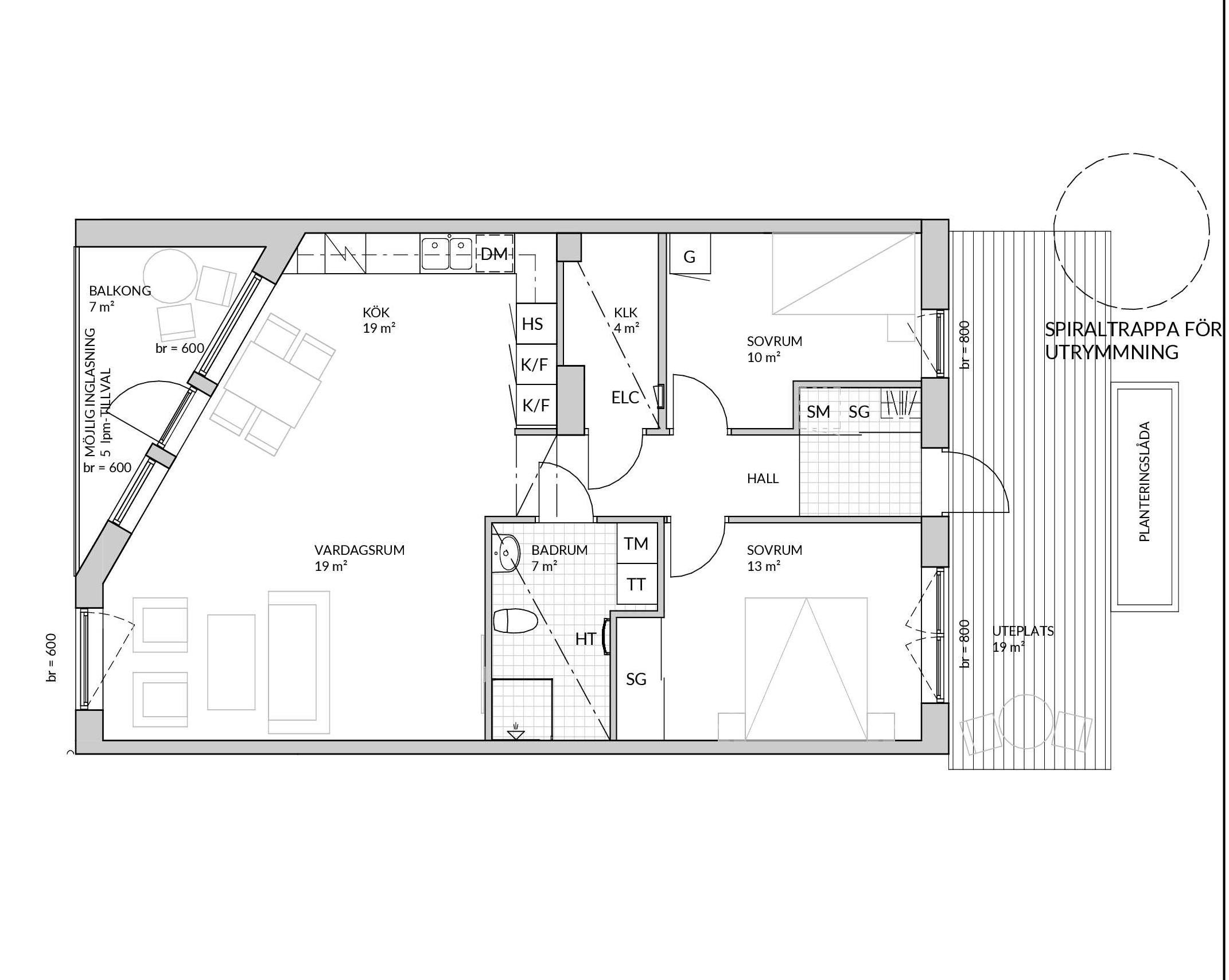 Rejäl trerummare med kök i vinkel och bra förvaring. Här har man en egen uteplats mot innergården och en balkong i västerläge.
