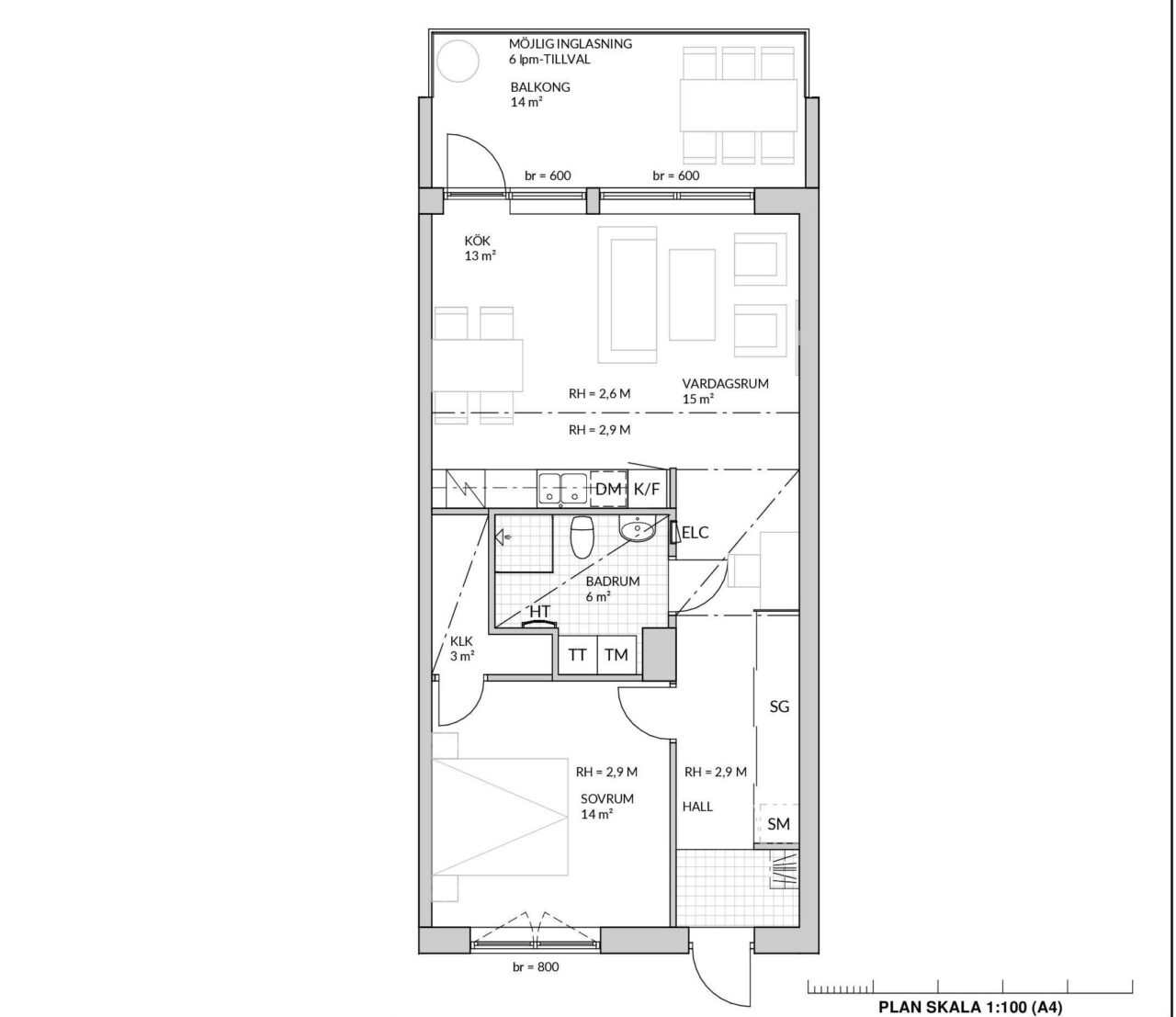 Lägenheterna på våning fyra har varierande takhöjd mellan 260-290 cm.