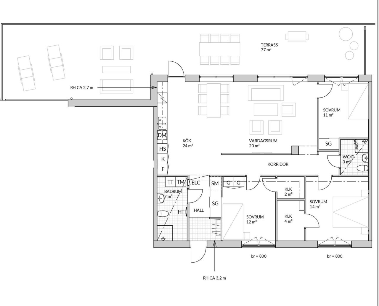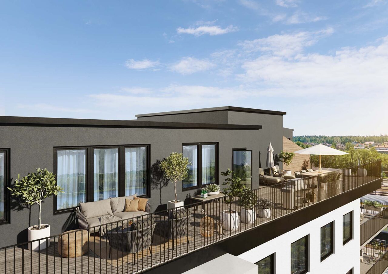 Nya Hotellets mest unika lägenhet är placerad högst upp i huset, det har projektets största boyta och med den största terrassen på hela 77 kvm!! Här har man en sluttande takhöjd från ca 260-320 cm för att skapa en extra rymd. Det finns tre bra planerade sovrum två rejäla klädkammare samt badrum med ett extra WC.