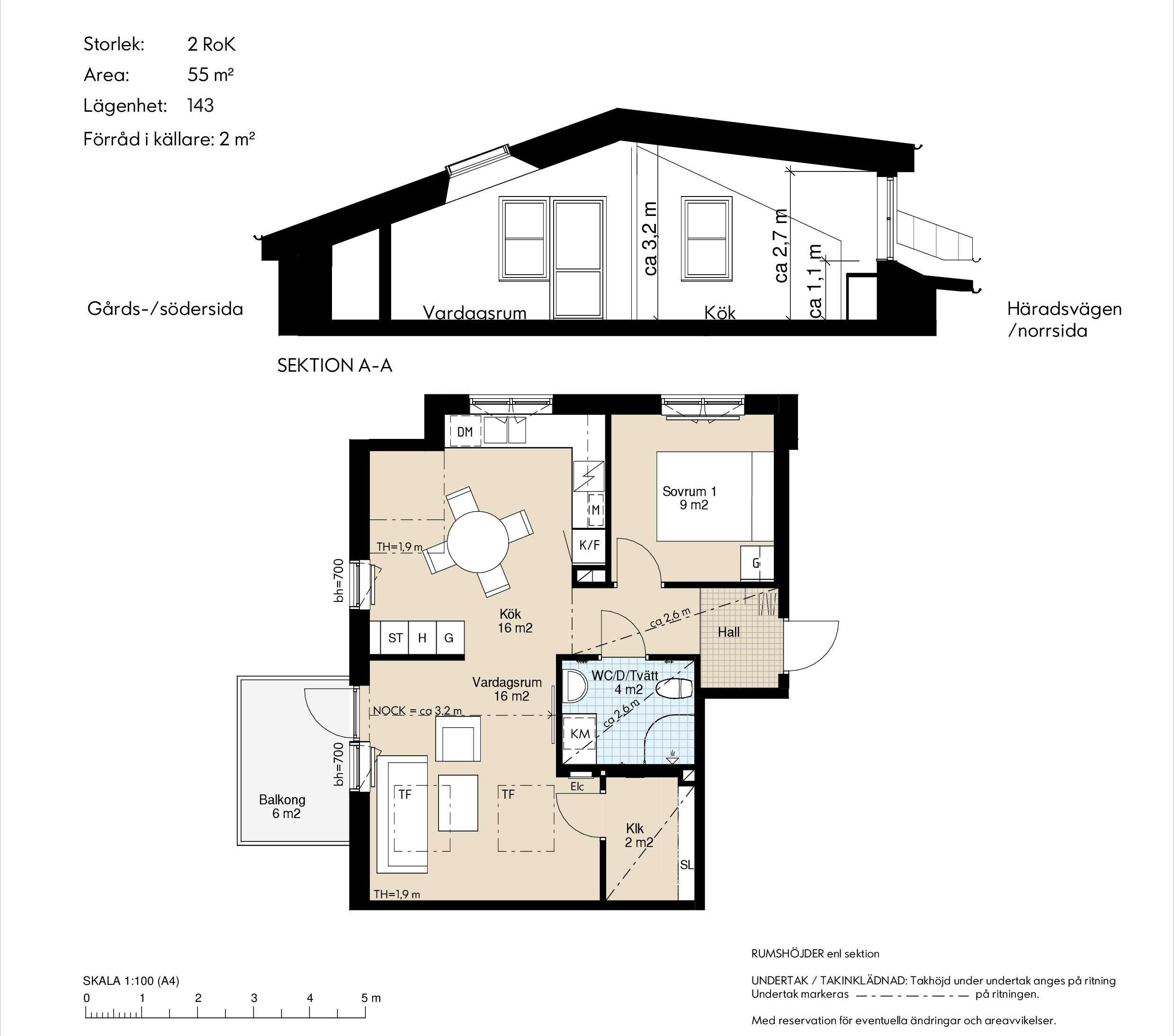 Högst upp i trapphus 1 hittar vi denna speciella tvåa. Lägenheten har snedtak vilket ger en skön karaktär. Från vardagsrummet når man balkongen i västerläge. Vardagsrummet har också två takfönster som skapar en fint ljus i lägenheten. Det stora fullutrustade köket är avskilt från övriga lägenheten. Sovrummet är rejält och lägenheten har också en klädkammare. Badrummet har en kombimaskin för klädvård.