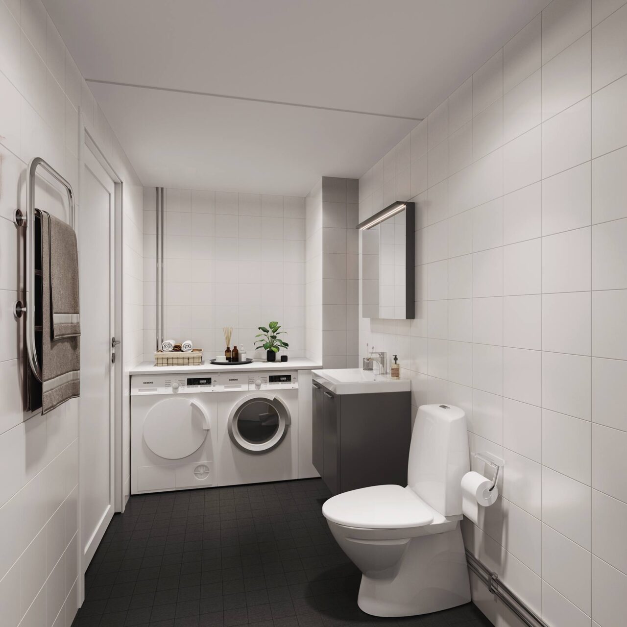 Högst upp i hus 2 finns denna härliga 4 rummare! Balkongen är på 23 kvm och sträcker sig utmed lägenheten i västerläge. Det stora sovrummet är placerat lite avskilt med en stor klädkammare och ett extra WC.