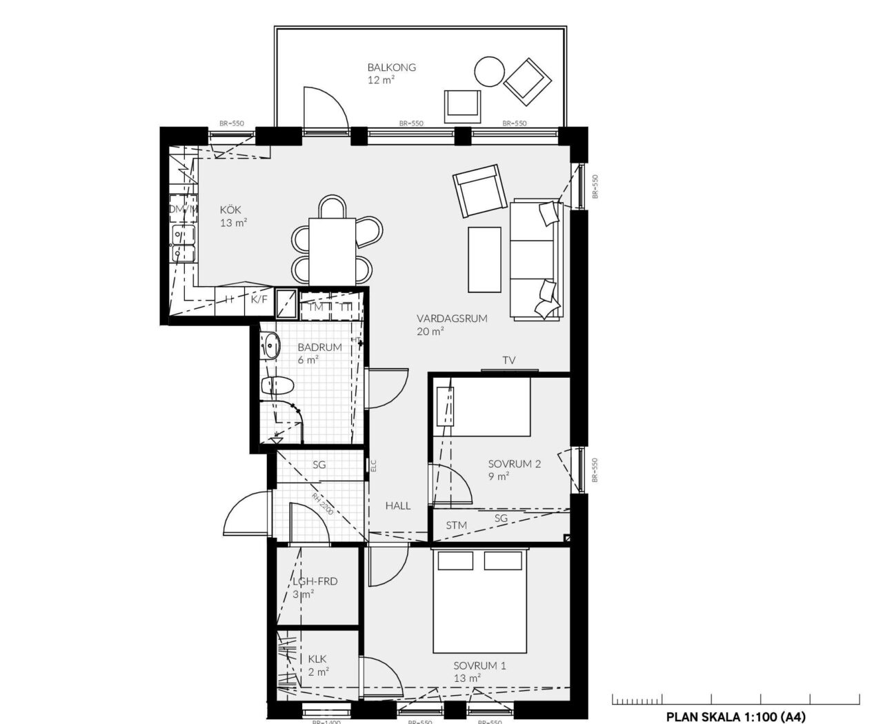 Trevlig trea med med rejäl balkong om 12 kvm där man kan njuta av magiska solnedgångar.